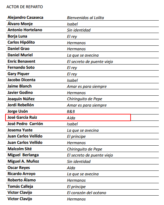 Os informamos que el actor José García, está en el listado de seleccionados de los PREMIOS UNIÓN DE ACTORES Y ACTRICES para las nominados como actor de reparto por su aparición en la serie Aída de Telecinco. ¡Muchas felicidades y mucha suerte!